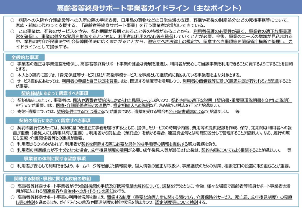 2023年には国が「高齢者終身サポート事業者ガイドライン」を定め、事業の在り方や信頼性の確保が明文化されました。